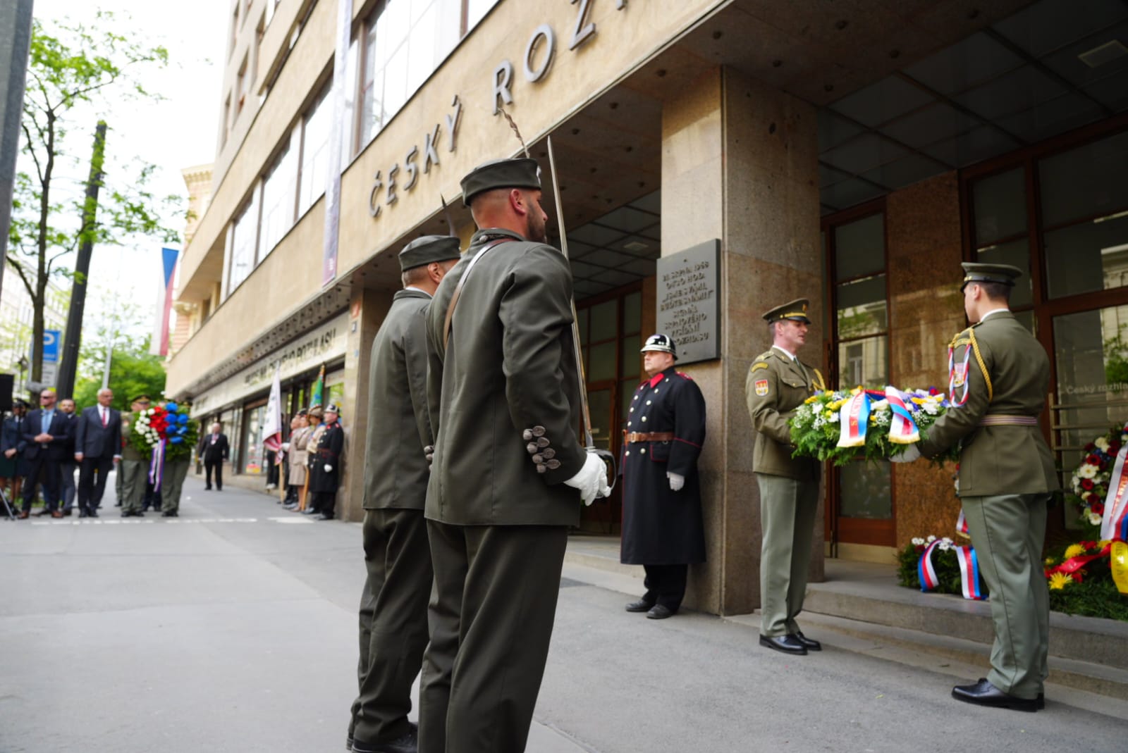 U příležitosti 80. výročí Květnového povstání českého lidu se v pondělí 5. května od 12.30 hodin uskutečnil před historickou budovou Českého rozhlasu v Praze na Vinohradské ulici 12 pietní akt k uctění památky padlých v bojích o rozhlas v květnu roku 1945.